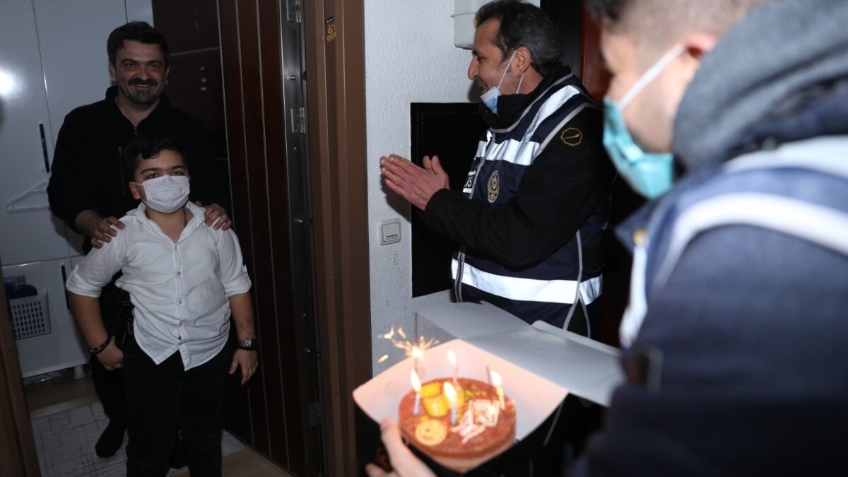Doğum günü pastasını alan polis ekipleri, Uras’a sürpriz yaptı. Polis ağabeylerini karşısında gören Uras’ın sevinci ise, yüzlerde tebessüm oluşturdu.