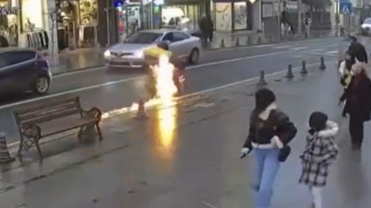 Yangın anı bir iş yerinin güvenlik kamerasına yansıdı.