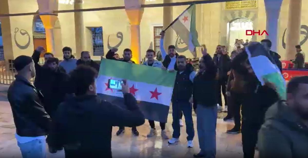 Namazın ardından meydanda toplanan Suriyeliler, Suriye ve Türk bayrakları taşıyıp, sloganlar attı.