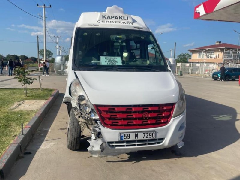 Tekirdağ'da Kapaklı ilçesi Pınarca Mahallesi Tandoğan Caddesi üzerindeki akaryakıt istasyonu önünde, Pınarca Mahallesi'nden Çerkezköy yönüne doğru giden Adnan A. kontrolündeki 59 M 7290 plakalı yolcu minibüsü, akaryakıt istasyonuna girmek istediği sırada karşı yönden gelen Ali Ö.’nün kullandığı 26 AGD 985 plakalı otomobille çarpıştı.