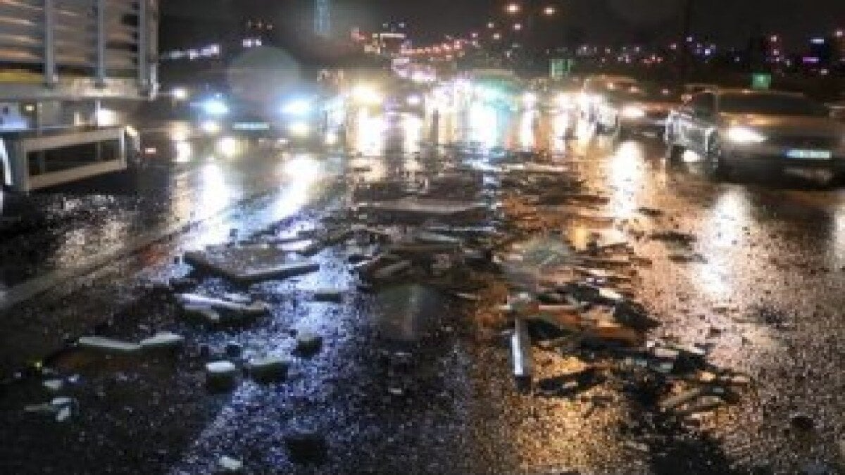 İstanbul TEM'de Mesut K. yönetimindeki 34 RR 2677 kamyonetin kasasından, inşaat malzemeleri yola savruldu.