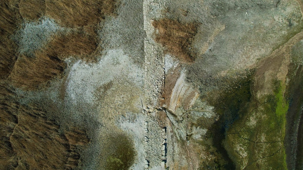 Havadan çekilen gölde su seviyesinin gerilemesi nedeniyle bazı alanların kuruduğu, bu nedenle tarihi yolun ortaya çıktığı belirlendi.