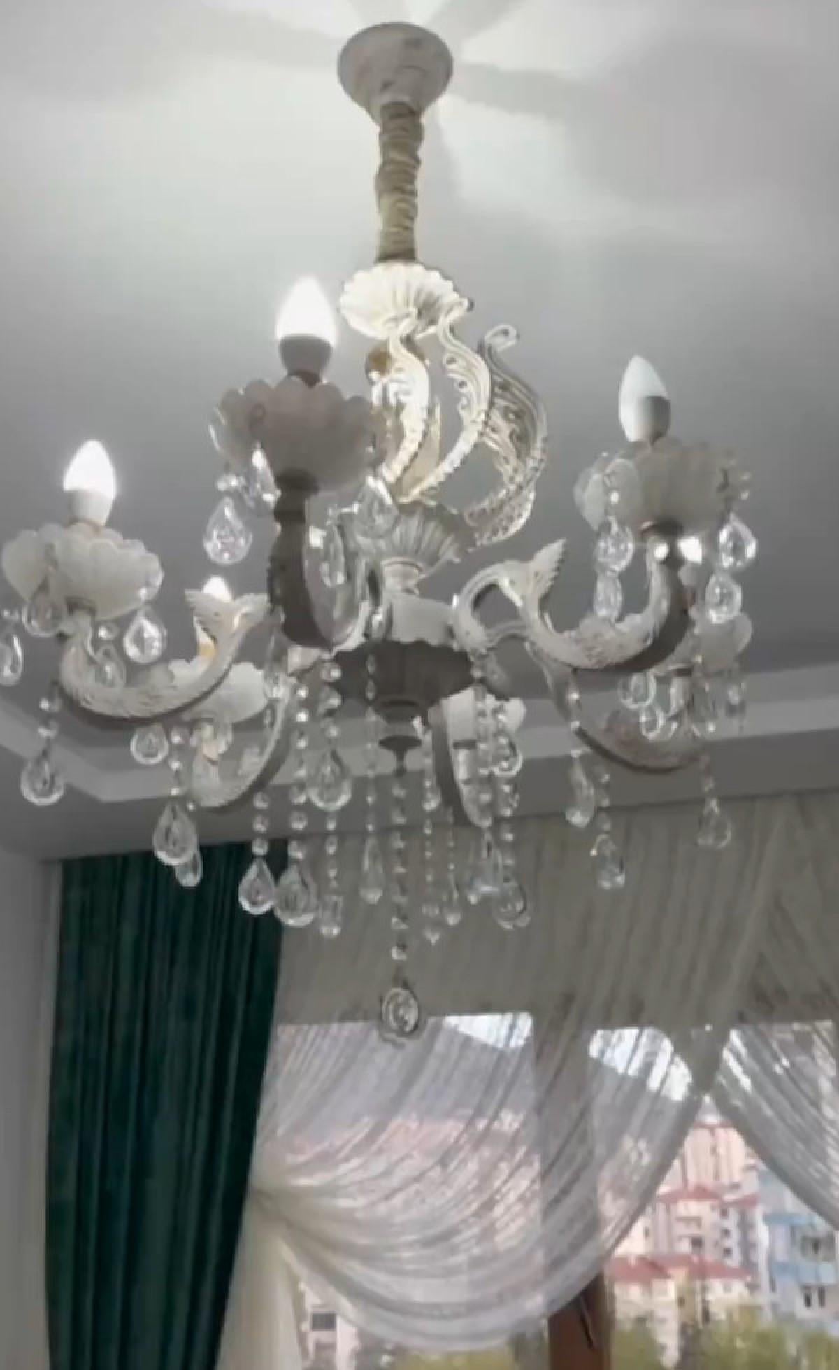 Sarsıntıyla beraber avizenin şiddetli bir şekilde sallandığı görülüyor..