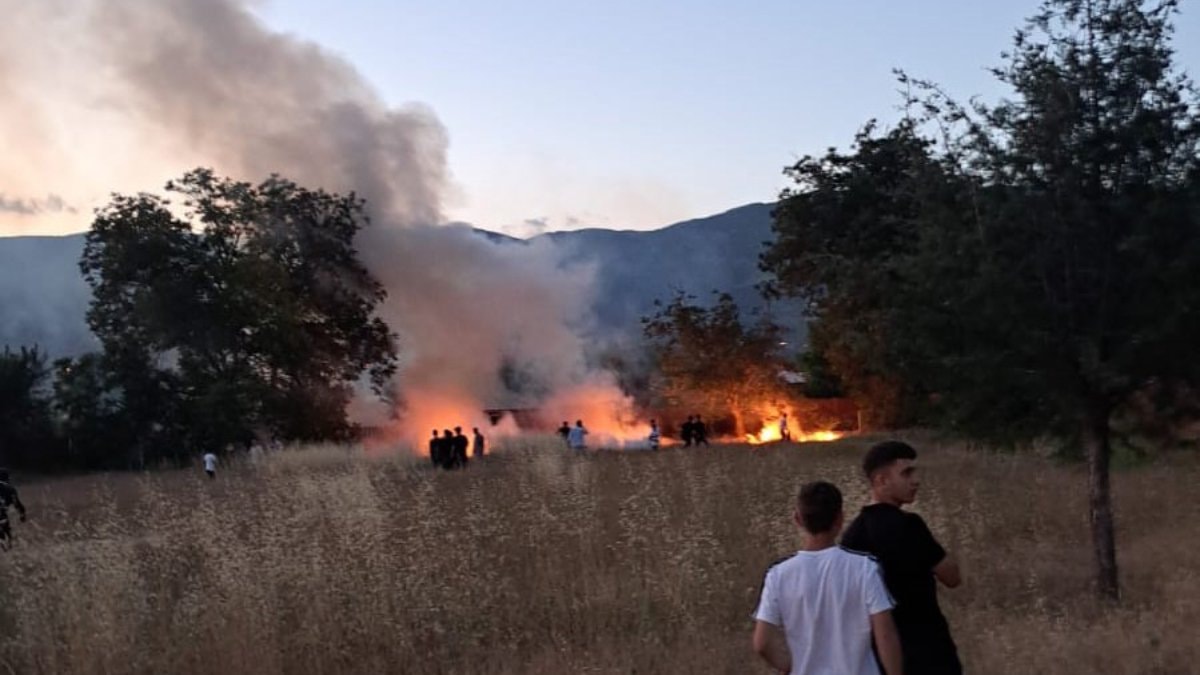Tokat'ta bir düğün salonunda akşam saatlerinde atılan havai fişek, araziye düşerek yangına neden oldu..