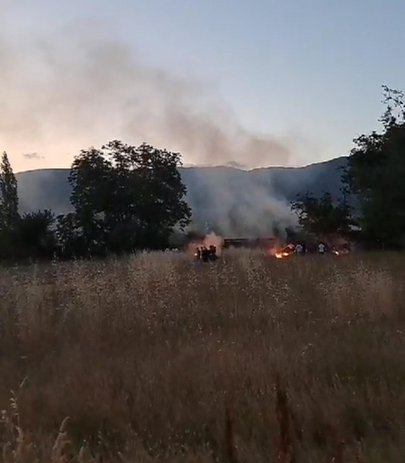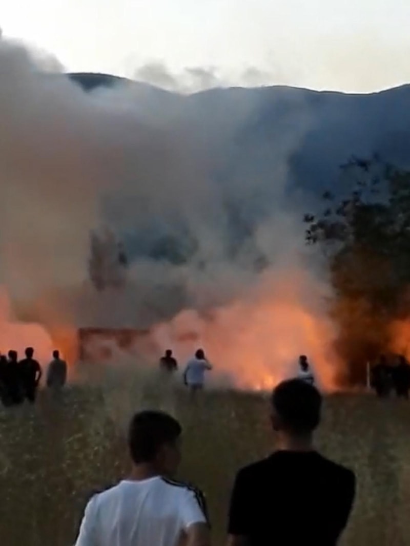 Atılan havai fişekler, salonun yan tarafındaki kuru otlarla kaplı araziye düştü. Otların tutuşmasıyla yangın çıktı.