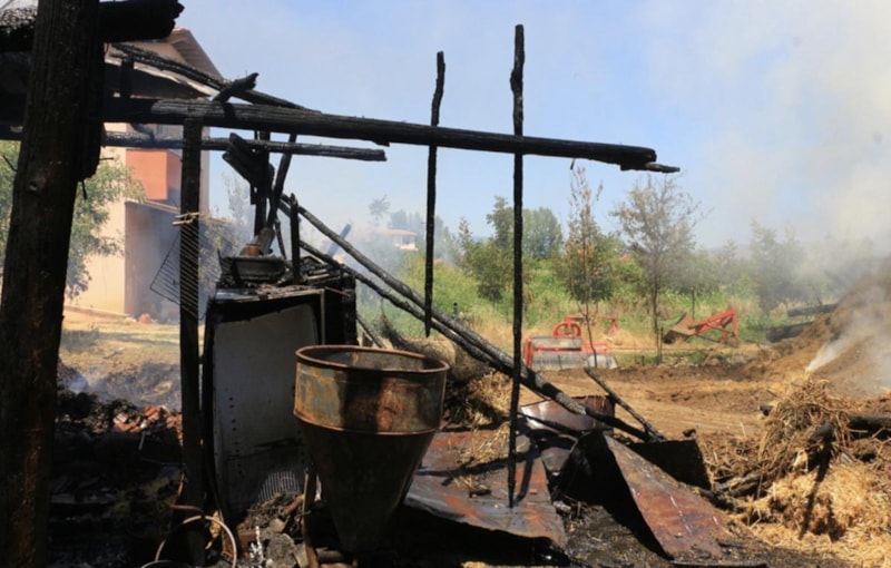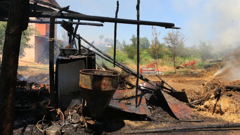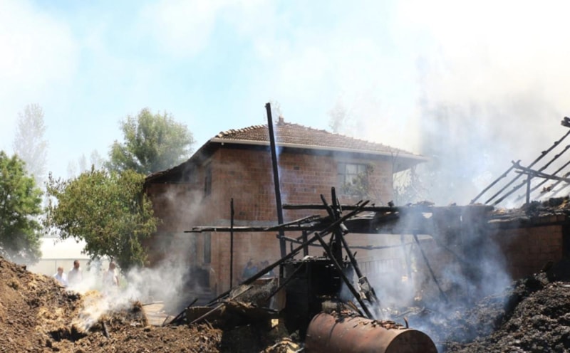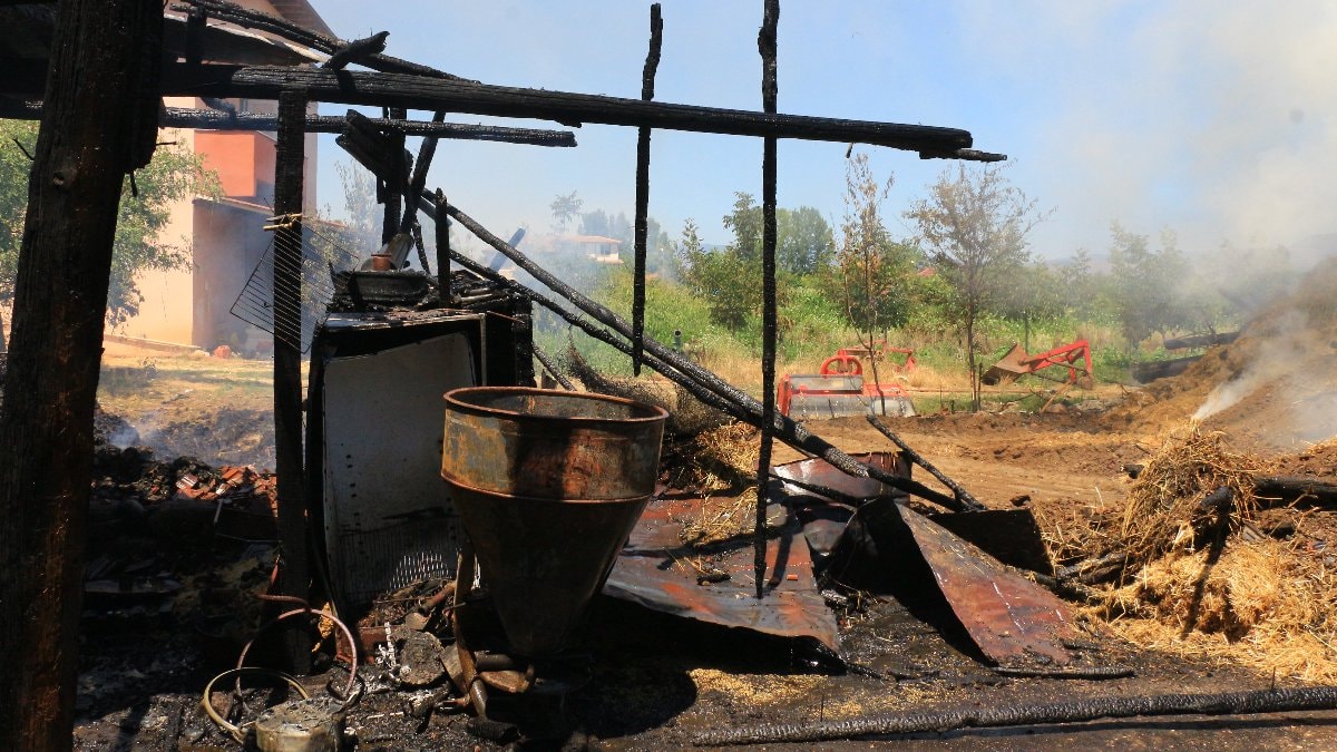 Evyaba Mahalle Muhtarı Durmuş Er, hayvanların, saman balyalarının, buğdayların ve tarım aletlerinin zarar gördüğünü söyledi.