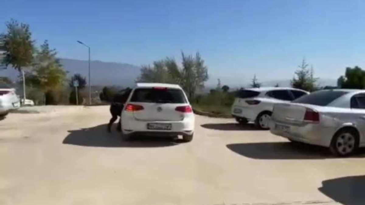 Aracın camında askıda kalarak sürüklenen güvenlik görevlisi şans eseri yaralanmadı.