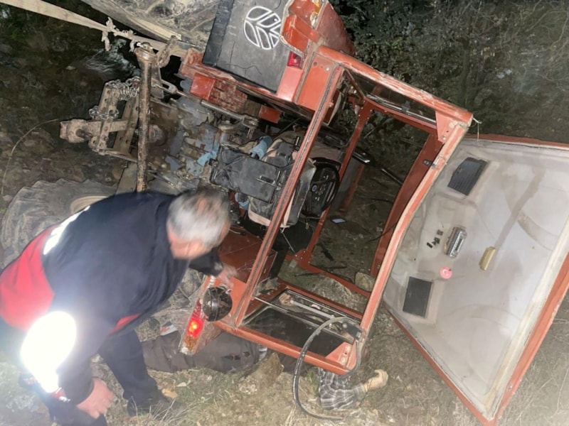 Yol kenarındaki traktörü fark eden vatandaşların ihbarı üzerine bölgeye itfaiye, sağlık ve jandarma ekipleri sevk edildi.