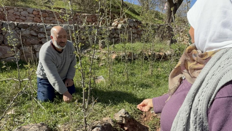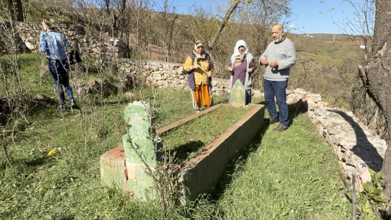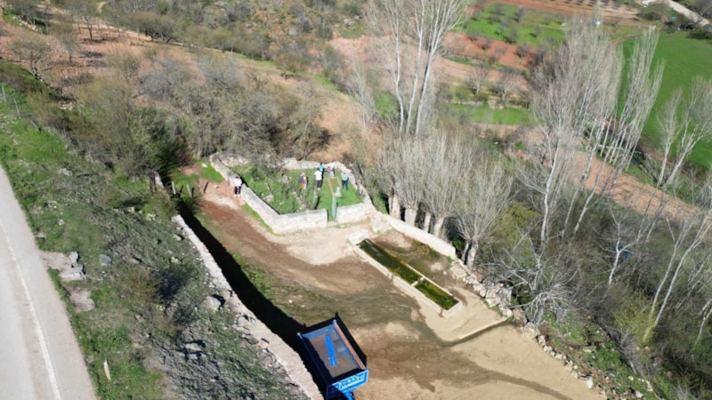 Köy halkının 'Cevher' adını verdiği türbeyi ziyaret edenler, türbe çevresindeki otları kesip toprağını alırken dileklerde bulunuyor.