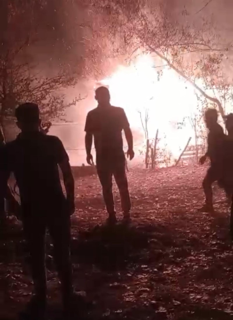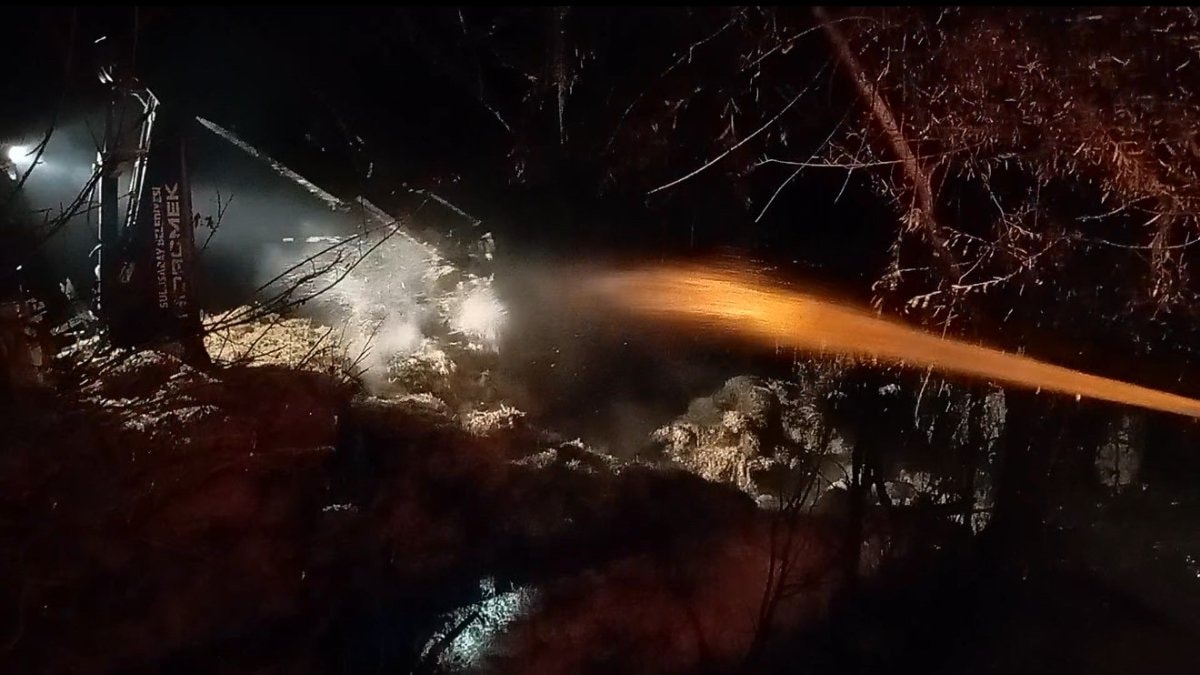 Kısa sürede büyüyen alevler, samanlıkta depolanan saman balyalarını sardı. Kıse sürede büyüyen alevler adeta geceyi aydınlattı.