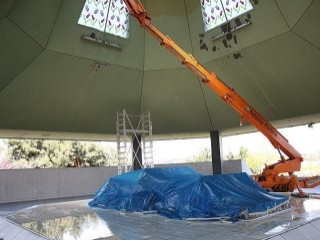 Topkapı'daki anıt mezarların restorasyonuna ilişkin proje, İstanbul Büyükşehir Belediyesi tarafından anıt mezarların rutubet nedeniyle boyası dökülen tavanlarına sıva yapılıyor.