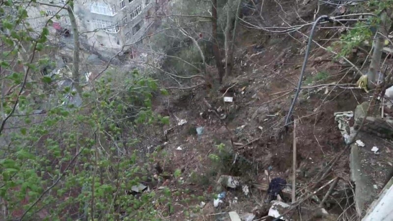 Yaklaşık 20 metre aşağıda bulunan evlerin üzerine topraklar düştü. Çevredekilerin ihbarı üzerine olay yerine polis, AFAD ve belediye ekipleri geldi.