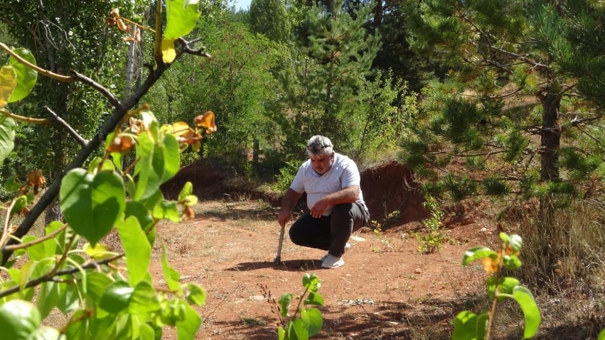 Doğada taş halinde bulunan kehribarın izini süren İpek, farklı taşlarla karıştırılabilen kehribarı tek tek seçerek topraktan çıkarıyor.