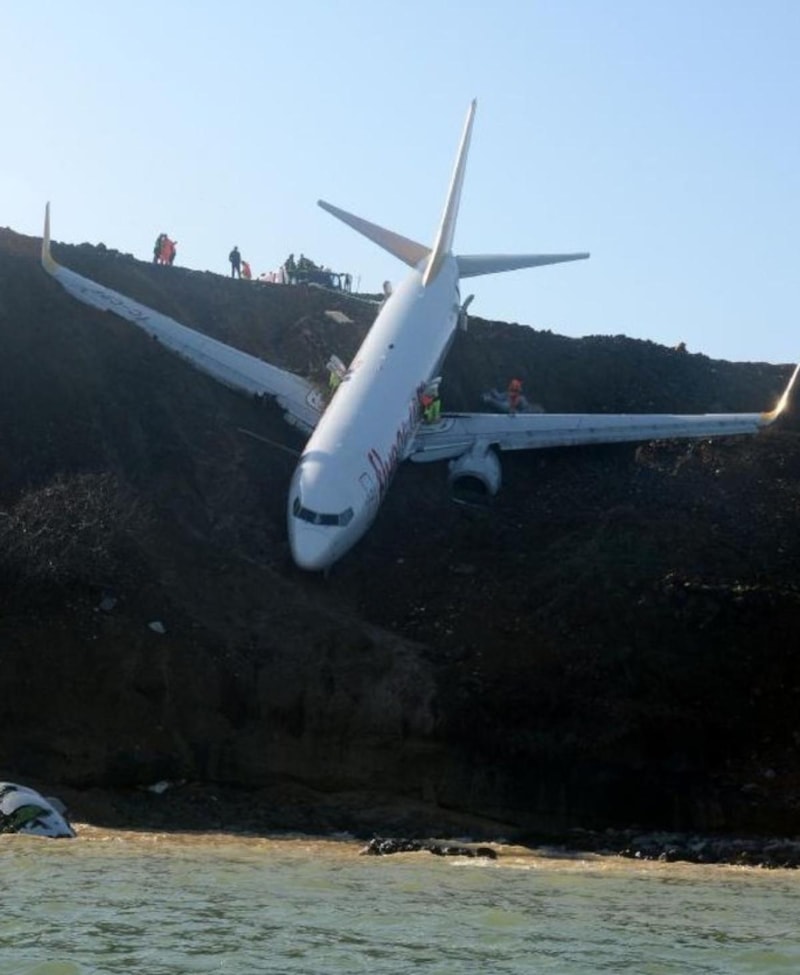 İniş takımları balçığa saplanan uçak, denize 25 metre kala durabildi. Uçaktaki 162 yolcu ve 6 kişilik mürettebat, ekiplerin müdahalesi ile tahliye edildi.