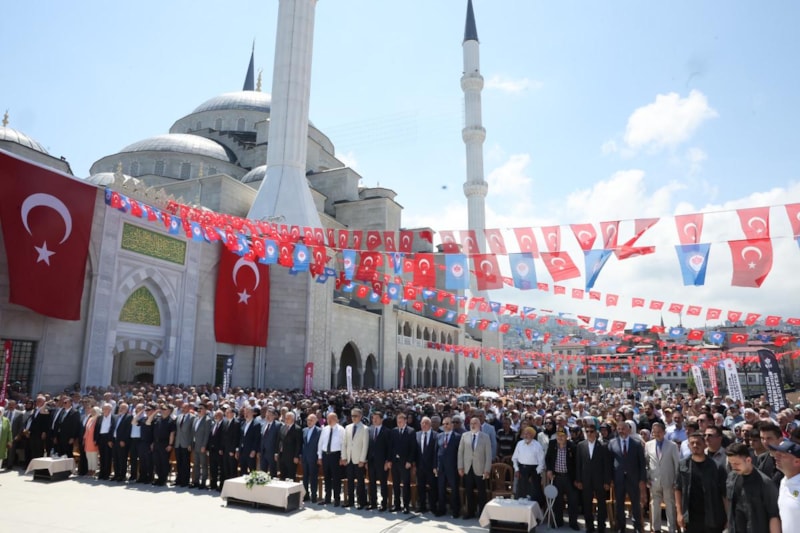 Trabzon’da 2019’da temeli atılan, Doğu Karadeniz’in en büyük camisi Hanife Hatun Camii ve Külliyesi, törenle ibadete açıldı.