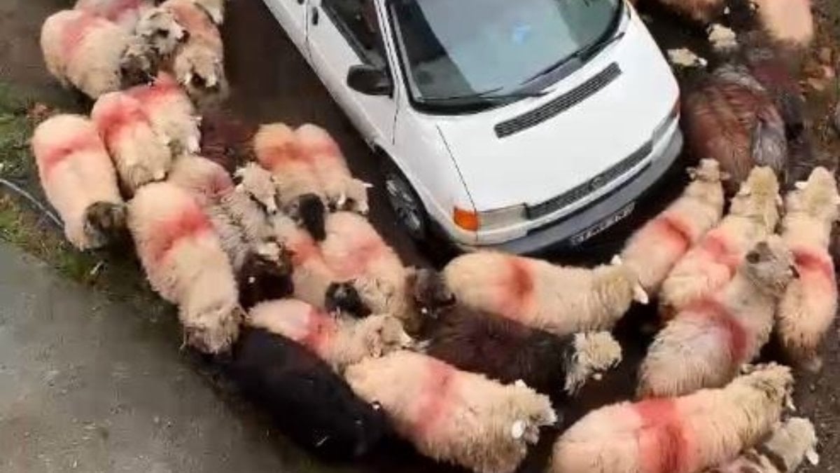 - Trabzon'un Araklı ilçesinde koyunlar, park halindeki bir minibüsün etrafında daire çizerek döndü.