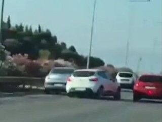 İzmir'de otomobil sürücüsü, yolda giderken tartıştığı sürücünün otomobiline doğru direksiyonu kırınca kazaya neden oldu. Çeşme otoyolundaki kaza, cep telefonuyla kaydedildi.