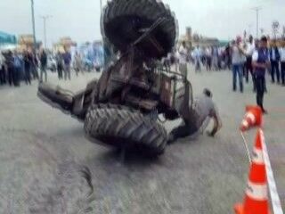 Davullu-zurnalı etkinlikte kalabalığın ortasında 1940'lı yıllara ait traktörü ile gösteri yapan İsmail Yalçın, daire çizdiği sırada kontrolden çıkan traktörün devrilmesi sonucu ölümden döndü.