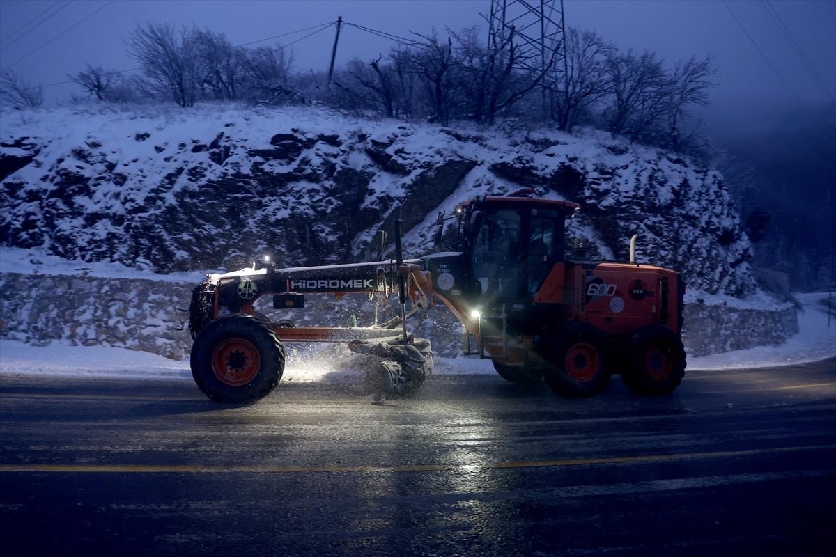İl Özel İdaresi ekipleri, kar yağışının yoğun olduğu kırsal alanlarda yolların kapanmaması için çalışmalarını sürdürdü.