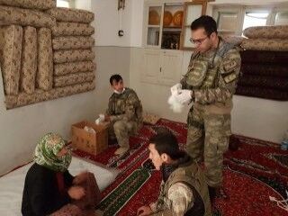 Muayene sırasında Özgür Suriye Ordusu (ÖSO) mensupları da tercümanlık yaptı. TSK ve operasyonlara destek veren ÖSO güçleri, Zeytin Dalı Harekatı'nın başından bu yana YPG/PKK-DEAŞ'ın işgalindeki Afrin'in 5 beldesinde biri belde merkezi, 63'ü köy, 6'sı köy altı yerleşim ve 20'si stratejik dağ veya tepe, biri YPG/PKK'ya ait üs olmak üzere 91 noktayı örgütten kurtarmıştı. TSK ve ÖSO, terör örgütlerinden arındırılan bölgelerde sivillere insani yardım da ulaştırıyor.