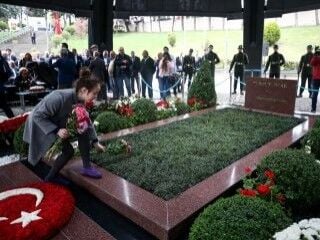Bu arada, Efe Özal'ın kızı Serra Özal da elinde tuttuğu çiçekleri, dedesi Turgut Özal'ın kabrine bıraktı.