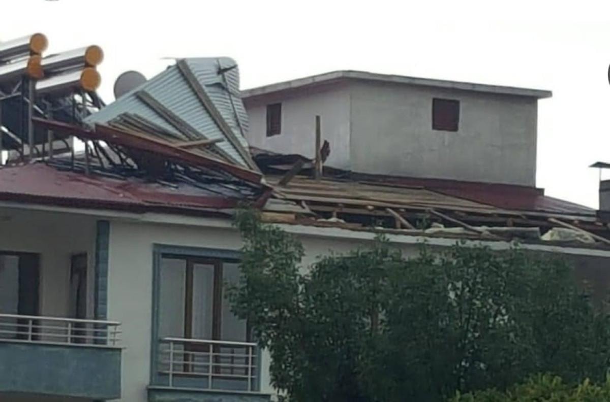 Çatının uçtuğu anlar bir vatandaş tarafından cep telefonu kamerasıyla kayıt altına alındı.