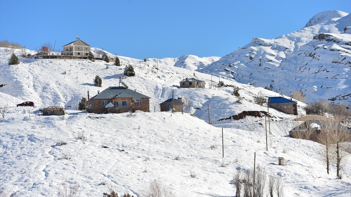 Yılın büyük bölümünde meraların karlar altında kaldığı Sülbüs Dağı eteğindeki köyde besiciler, zor şartlara rağmen küçükbaş hayvanların bakımını yapıyor.