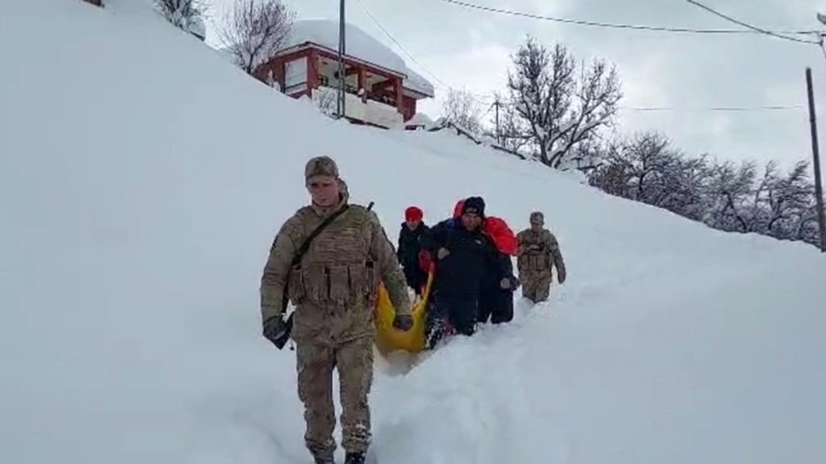 - Yoğun kar ve yol kapanması nedeniyle sağlık, jandarma ve AFAD ekipleri, yaklaşık 1 kilometrelik mesafeyi yaya olarak geçerek hastayı ambulansa taşıdı.