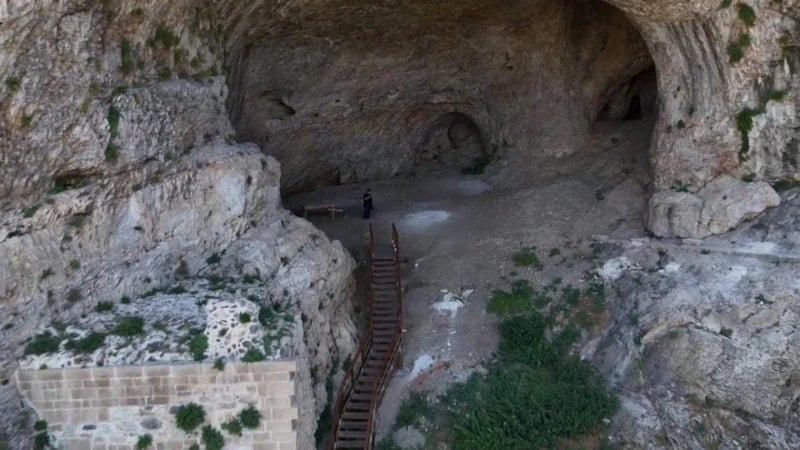 Gezi amaçlı mağaraya çıkmak isteyen turistler yapılan merdivenleri kullanarak yüzlerce basamak çıkıyorlar.