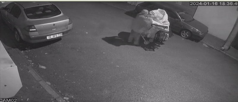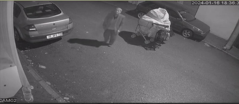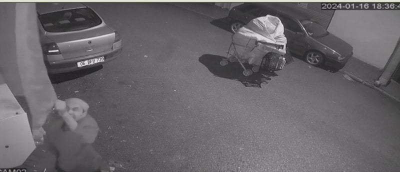 Daire sahibi, Türk bayrağının yerinde olmadığını görüp güvenlik kameralarını kontrol ettiğinde bir kişinin söküp çöp topladığı arabaya koyduğunu fark etti.
