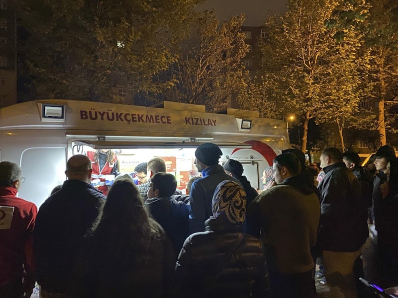 İstanbul'da yaşanan 6.2 büyüklüğünde depremin ardından Türk Kızılay toplanma alanlarında vatandaşlara beslenme desteğini sürdürüyor.