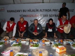 Görevlilerle çadırları dolaşarak Suriyelilere, içerisinde Halep pilavı, tavuk, cacık ve hurmanın olduğu kumanyayı dağıtan Kınık, iftarını, çadır içerisine kurulan sofrada Suriyelilerle açtı.