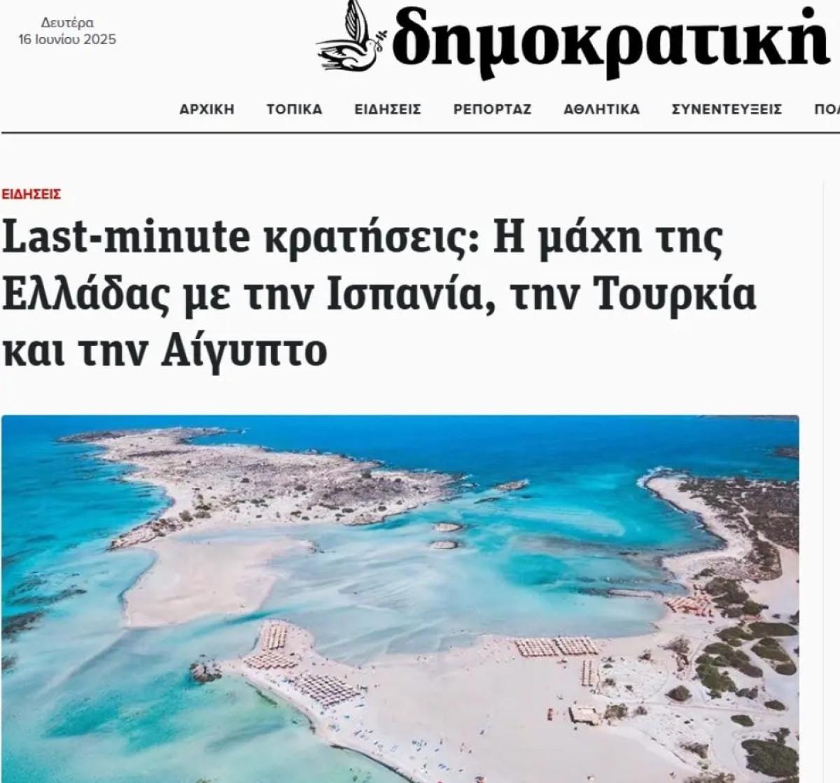 Bir diğer Yunan haber sitesi dimokratiki.gr son rakamları analiz ederek Travel Data + Analytics (TDA) İş Geliştirme Direktörü Roland Gassner'in "Geleneksel olarak Türkiye'yi seçen bazı turistler bu yıl Yunanistan, Mısır ve Bulgaristan'a yöneliyor - tur operatörlerinden gelen rezervasyonlarda çift haneli artışlar gösteren ülkeler." ifadelerini aktardı.
