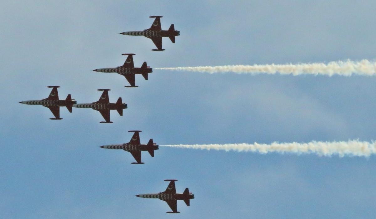 Birbirlerine son derece yakın mesafelerde uçarak gerçekleştirdikleri koreografiyle dikkat çeken Türk Yıldızları pilotları, Antalya semalarında görsel şölen sundu. Gökyüzündeki manevraları ilgiyle izleyen vatandaşlar, telefonlarıyla bu anları kayda aldı.
