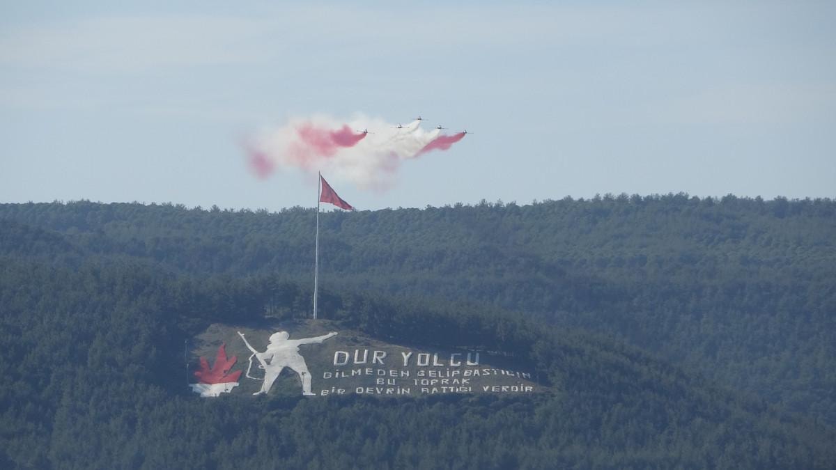 Türk Hava Kuvvetleri'nin akrobasi timi Türk Yıldızları, 18 Mart Şehitleri Anma Günü ve Çanakkale Deniz Zaferi'nin 110. yılı anısına, Çanakkale semalarında anlam dolu bir selamlama uçuşu düzenledi. Bandırma 6. Ana Jet Üssü'nden havalanan Türk Yıldızları, Çanakkale'nin simgesi haline gelen kordon boyu ve boğaz üzerinde görkemli bir gösteri sergileyerek gökyüzünde zaferin izlerini bıraktı.