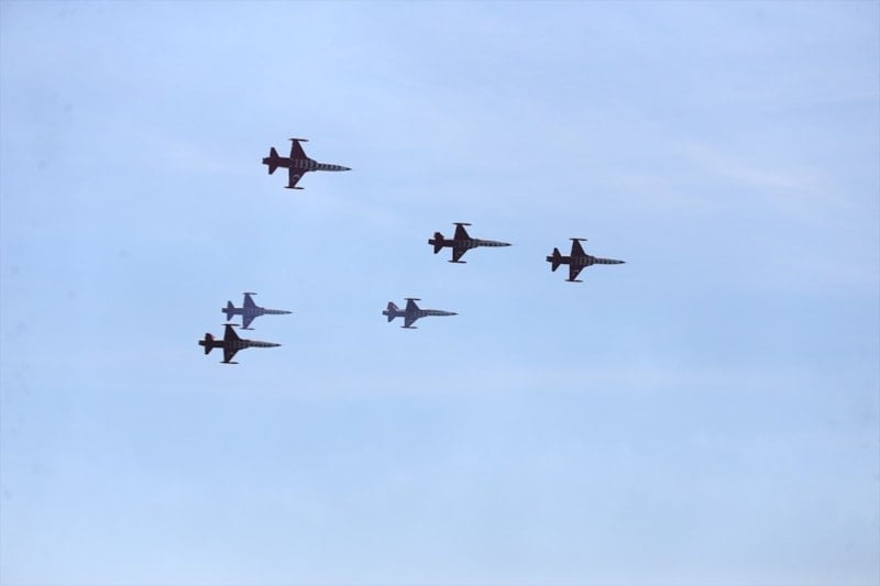 Çanakkale Boğazı üzerinde yaklaşık 30 dakika süren gösteri uçuşu boyunca Türk Yıldızları’nın senkronize hareketleri dikkat çekti. Gösteri, bölgedeki tarihi atmosferle birleşerek anlamlı bir görsel şölen sundu.