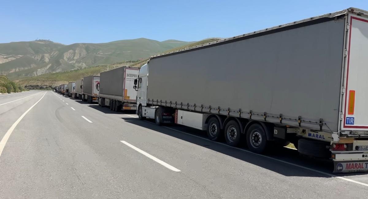 Tır sürücüleri, Esendere Sınır Kapısı'ndan İran'a geçip yüklerini teslim etmek için sıra beklerken, İran'dan Türkiye gelmek için aynı şekilde tır şoförlerin kuyruğu oluşturdu.