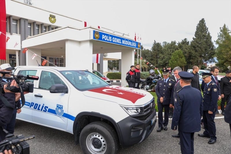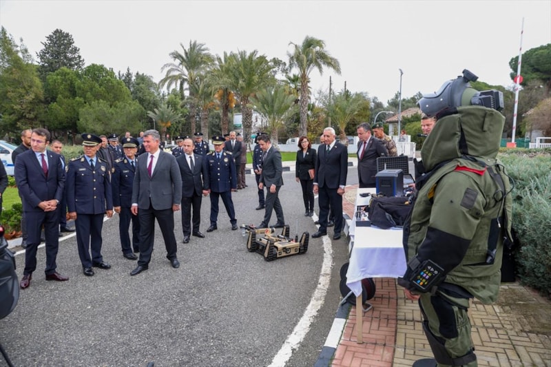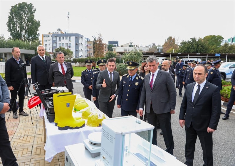 Türkiye'nin finansmanıyla alınan 10 araç ve Emniyet Genel Müdürlüğünce (EGM) hibe edilen 2 polis motosikleti, laboratuvar, olay yeri inceleme, fotoğrafçılık ve bomba imha malzemeleri, Kuzey Kıbrıs Türk Cumhuriyeti Polis Genel Müdürlüğüne törenle teslim edildi.