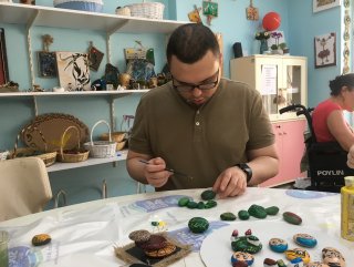 Eğitim aldığı merkezde de birçok eğitime katılan Barbaros, darbuka çalıyor, seramik boyamaları yapıyor.