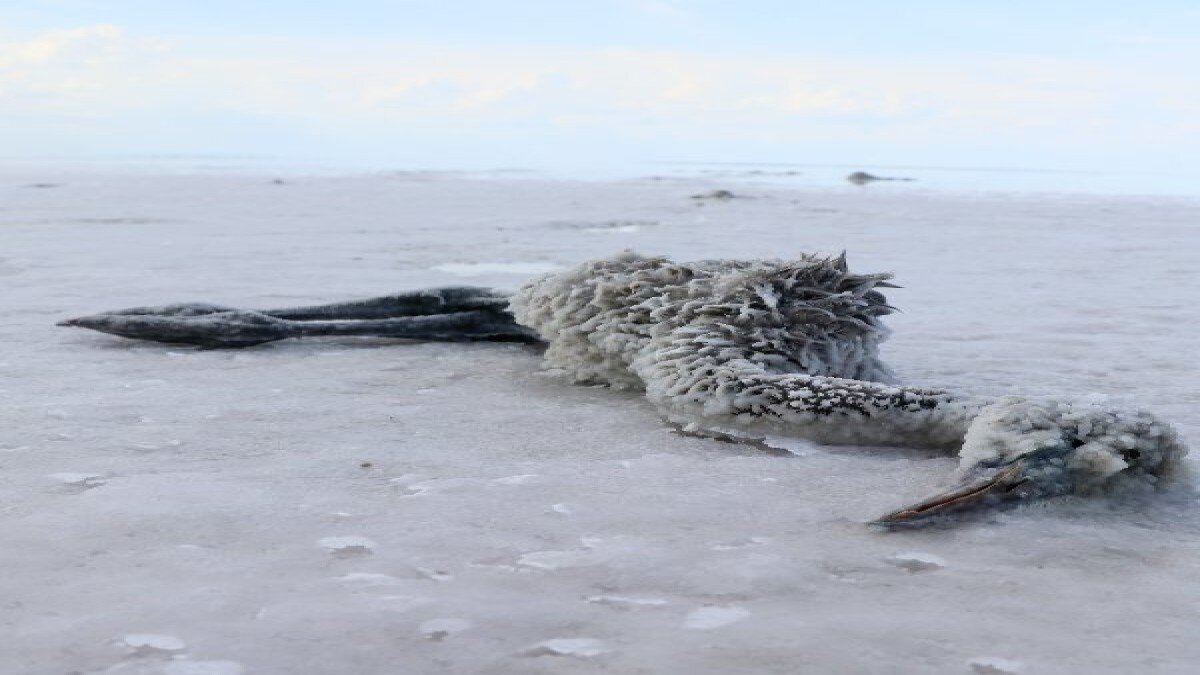 Ölü olarak bulunan flamingoların büyük çoğunluğu, genç flamingolardan oluşuyor. Bazı ölmüş flamingolar, gölde tuzla kaplandı.