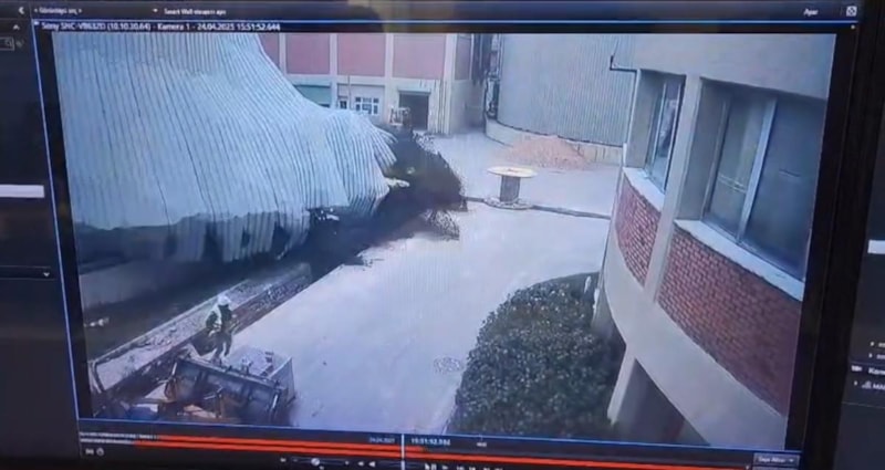 Görüntülerde, işçilerin çalışma yaptığı sırada bir anda şiddetli patlamanın meydana geldiği, işçilerin deponun altında kaldığı anlar yer aldı.