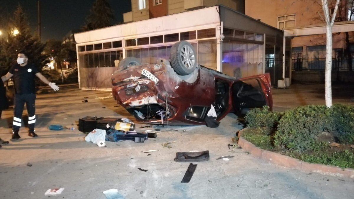 Yolda savrulan otomobil önce yol üzerindeki tabelaları biçti. Ardından bir sosyal tesisin bahçesine uçup takla atarak ters yattı. Olay yerine itfaiye polis ve sağlık ekipleri sevk edildi.