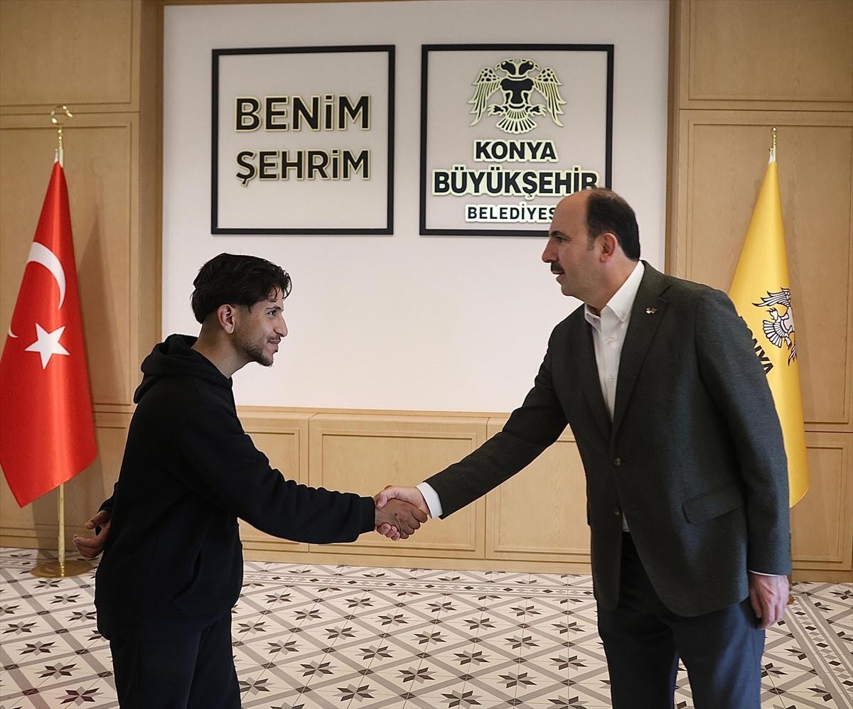 Konya Büyükşehir Belediye Başkanı Uğur İbrahim Altay, Selçuk Mahallesi'nde çökme tehlikesi yaşayan 4 katlı binada felaketi önleyen kahraman Ali El Hüseyin ile bir araya geldi.