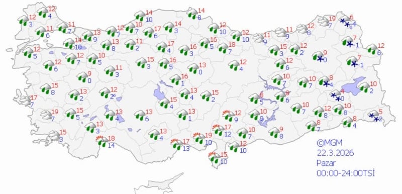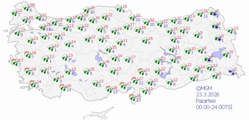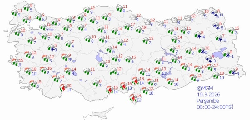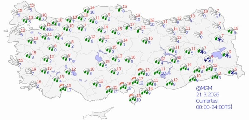 Yağışlar yağmur-sağanak, yer yer kar tahmin ediliyor.