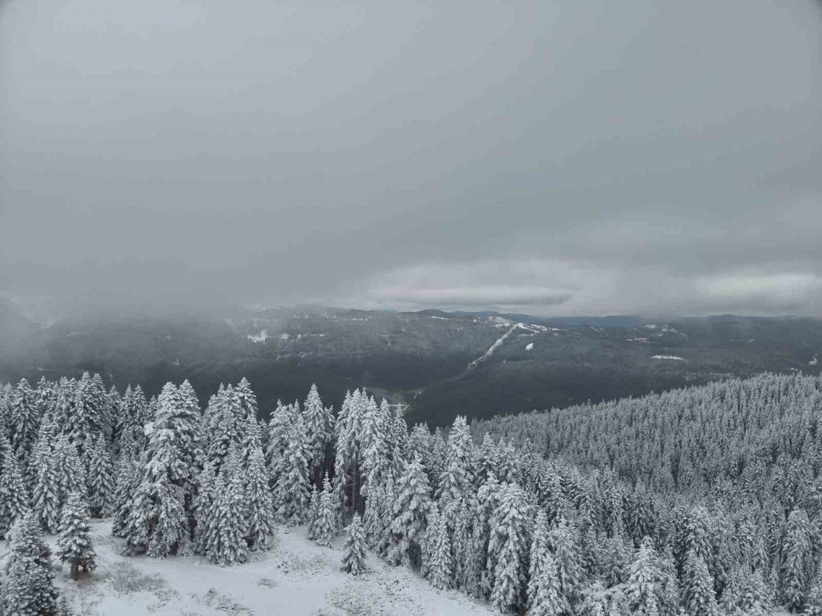 Beyaza bürünen Ilgaz Dağı, havadan görüntülendi.