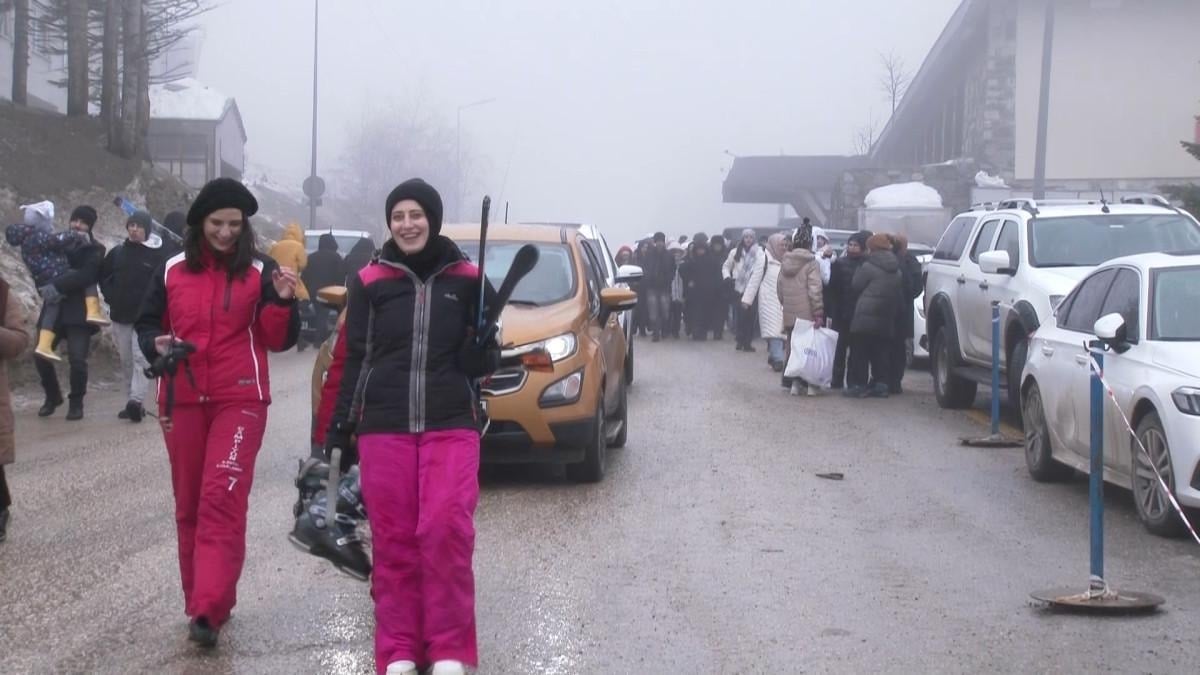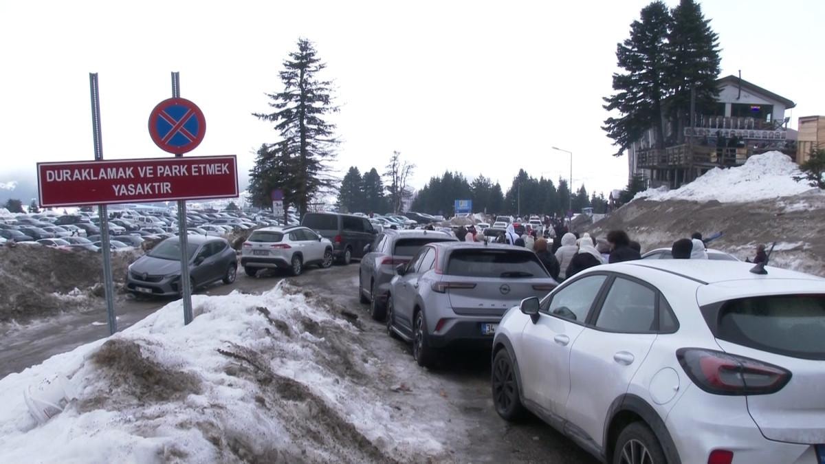 Vatandaşlar kayak merkezlerinde adım atacak yer bulamazken, otoparklarda da durum farklı değildi.