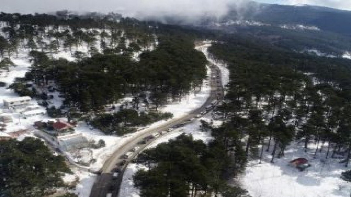 Hafta sonunu Uludağ'da kayak yaparak geçirmek isteyen tatilciler, yolda uzun araç kuyrukları oluşturdu.