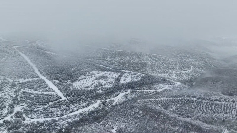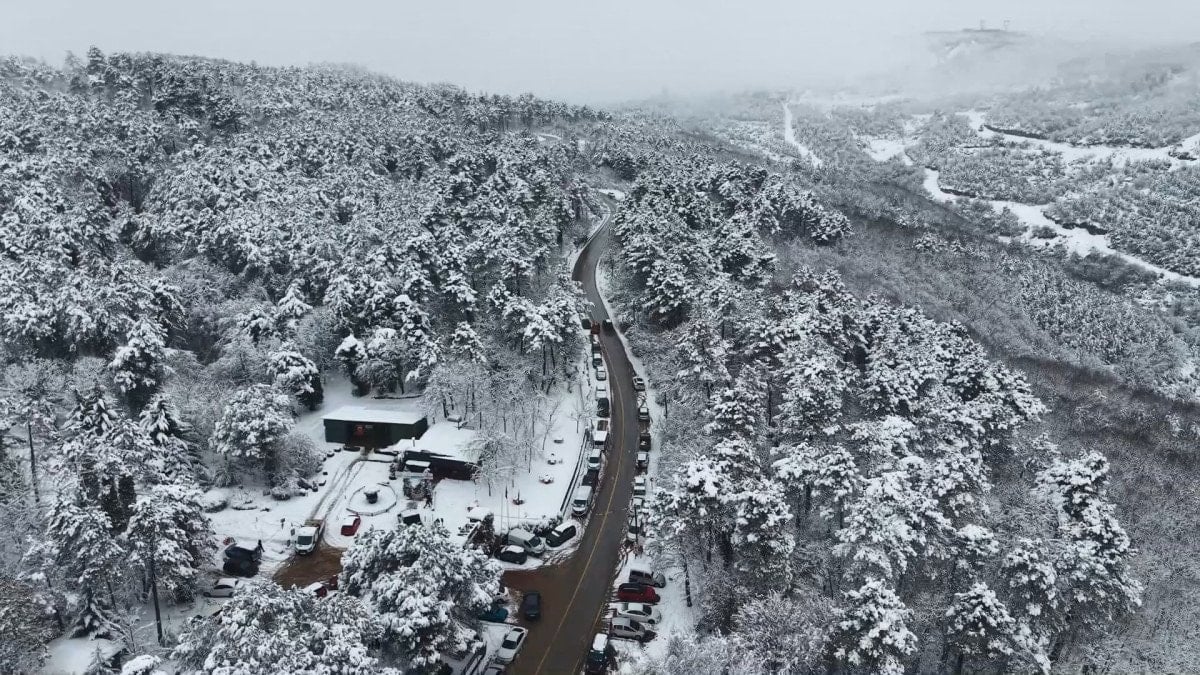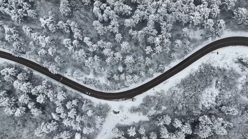 Karla kaplanan ormanlık alanlar ve binalar, drone ile havadan görüntülenerek eşsiz kış manzaraları kayda alındı.