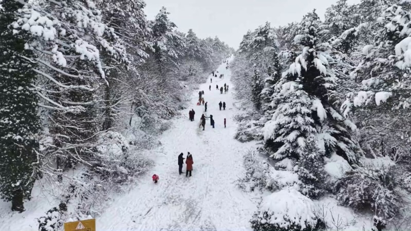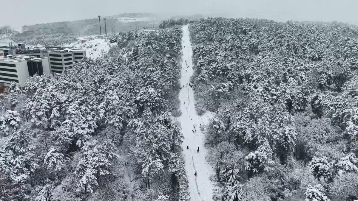 Kentin önemli yeşil alanlarından biri olan Kent Ormanı’na gelen vatandaşlar, kızakla kayarak ve kar topu oynayarak kar yağışının tadını çıkardı.