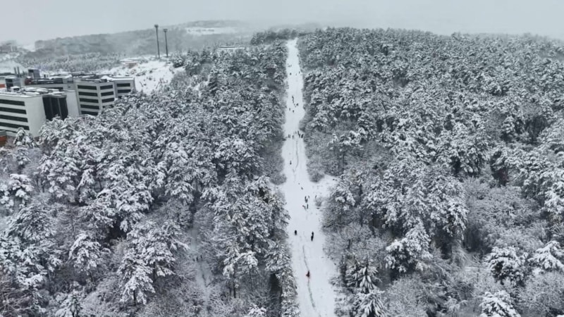 Kocaeli’de etkili olan kar yağışı, kentin yüksek kesimlerini beyaza bürürken İzmit’teki Umuttepe mevkiinde ortaya çıkan kartpostallık manzara drone'la kaydedildi.